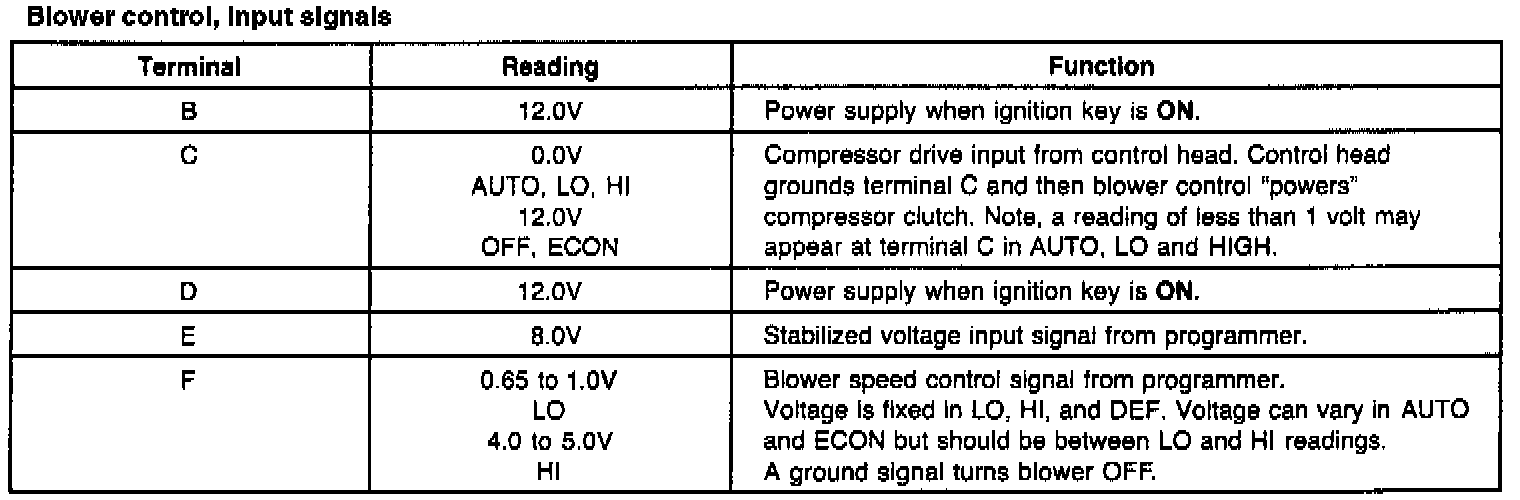 Blower Control, Input Signals