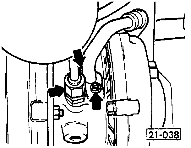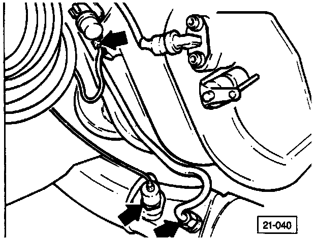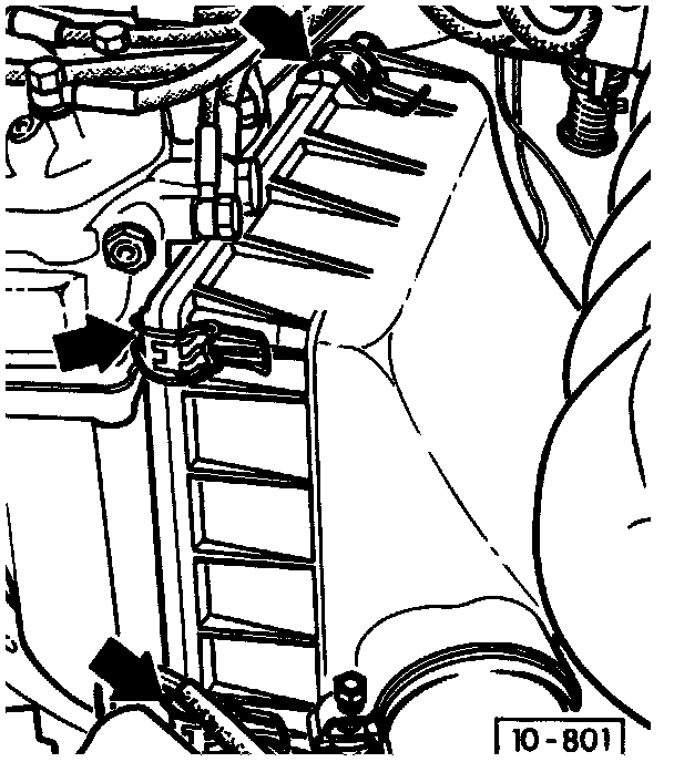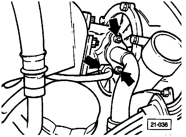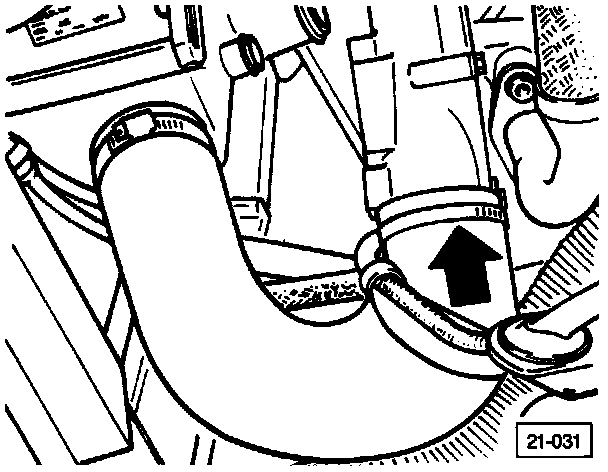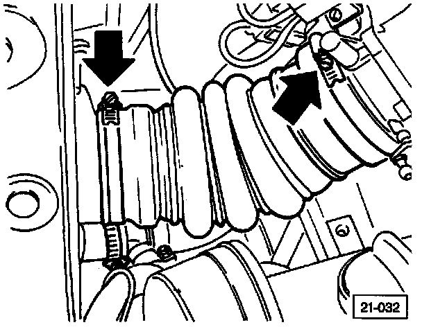 - Remove vacuum hose between turbocharger and air intake duct (left arrow)