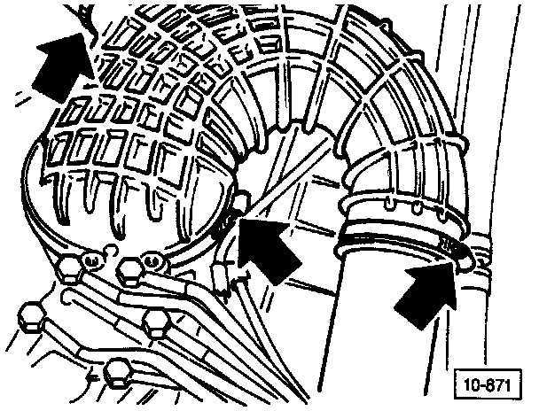 - Disconnect exhaust pipe from turbocharger (right arrows)