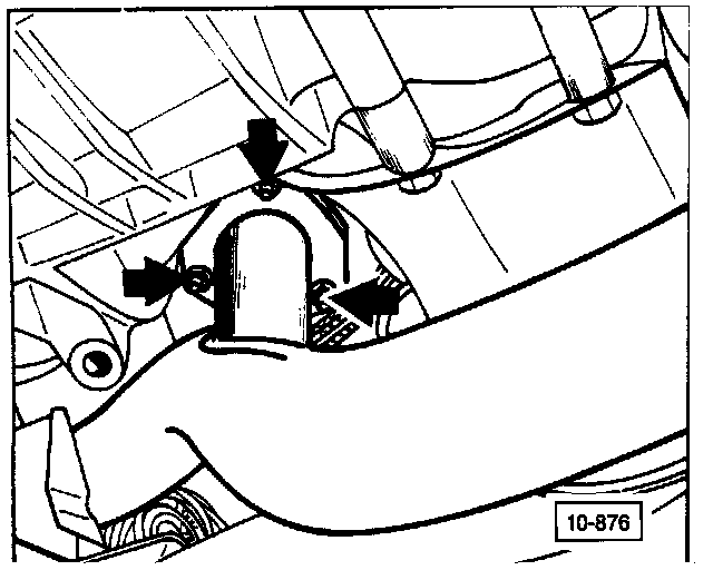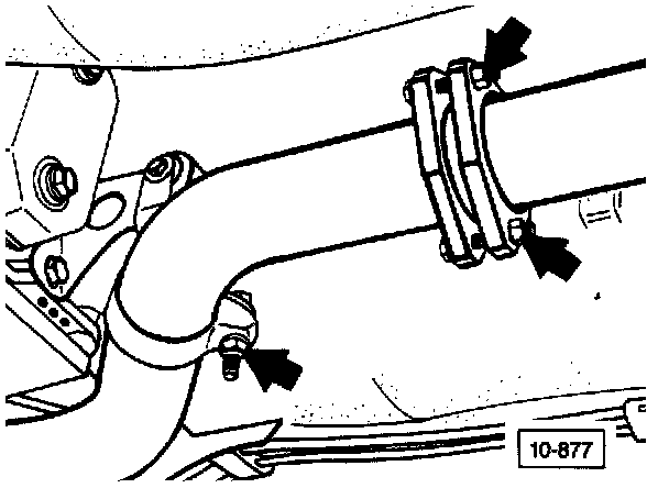- Disconnect exhaust pipe from transmission mount and front muffler (arrows)