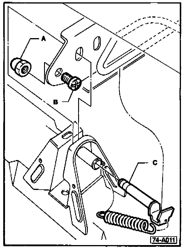- Pull seat adjustment handle to release retaining rod C from seat guide