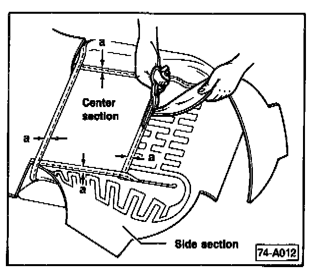 (chart 5 and 6) DO NOT cut into leather seat cover, DO NOT cut closer than ( a ) to seat cover seam. ( a )=5.0 mm (13/64 in.)