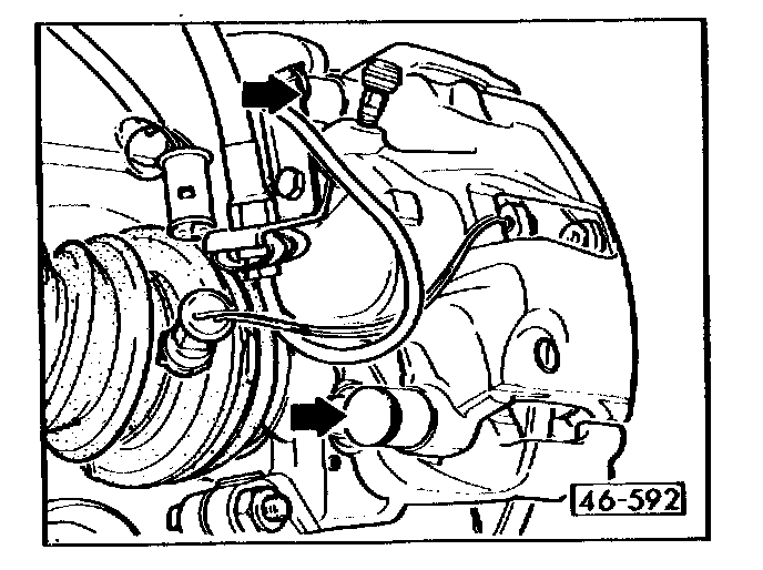 - tighten brake caliper housing guide bolts to 25 Nm (18 ft lb)