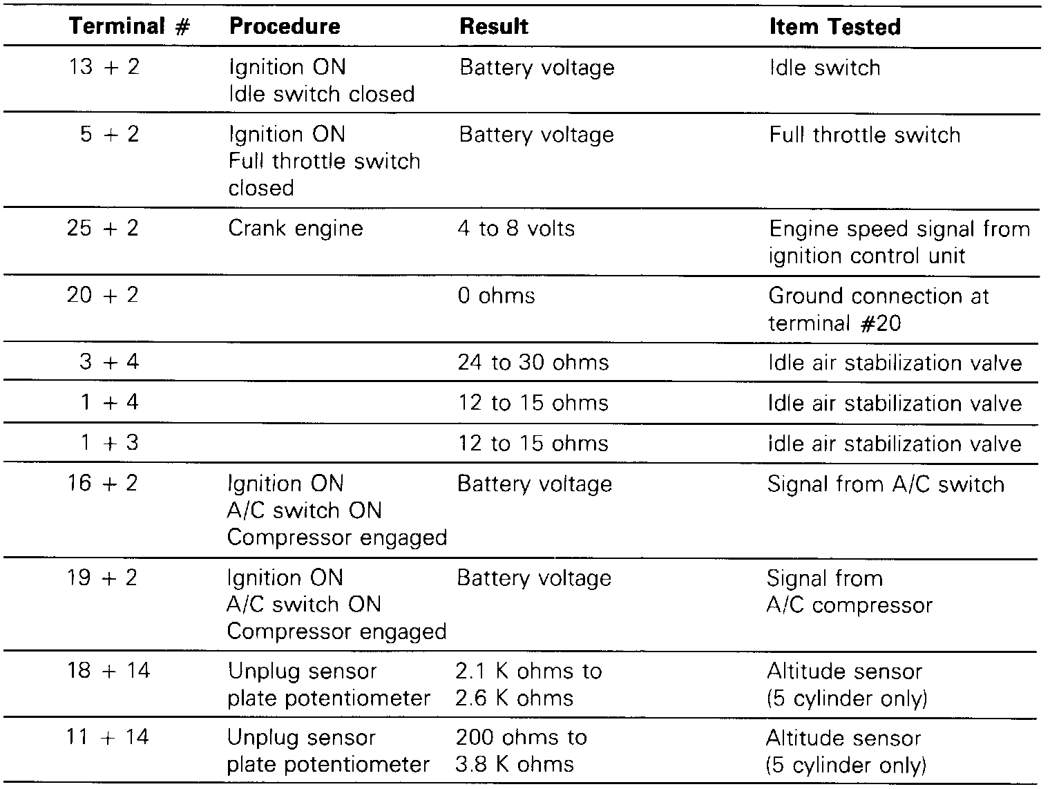 The entire fuel injection electrical system can be tested from the disconnected control unit plug.