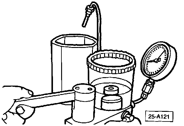 - using suitable container under injector to catch spray, connect injector loosely to tester pressure line