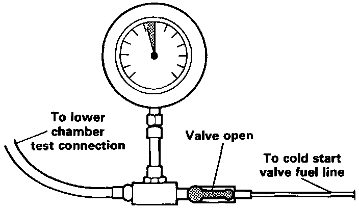 NOTE: The residual pressure check does not include the cold start valve. To check, reattach fuel line, energize fuel pump, and check valve visually for leaks.