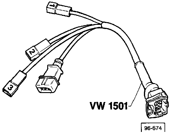 - unplug connector from potentiometer and connect test harness VW 1501 to potentiometer. Engine harness connector remains open