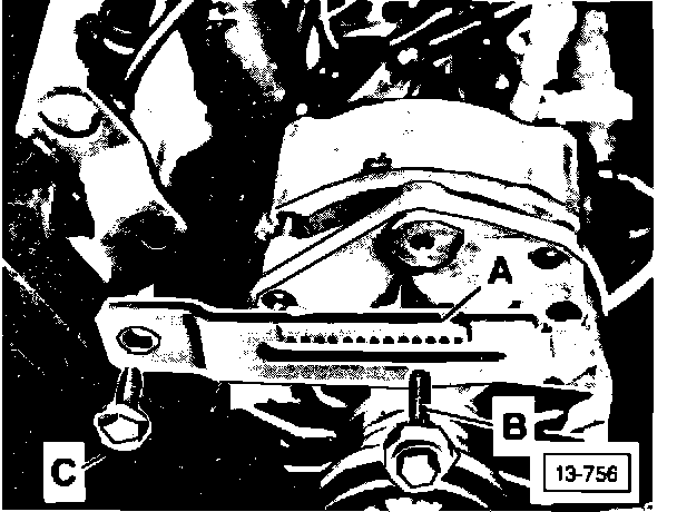- tighten bolt (C) securing alternator bracket to attachment eye