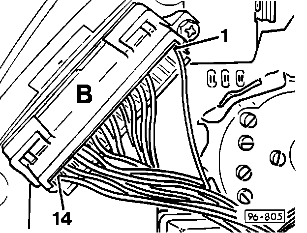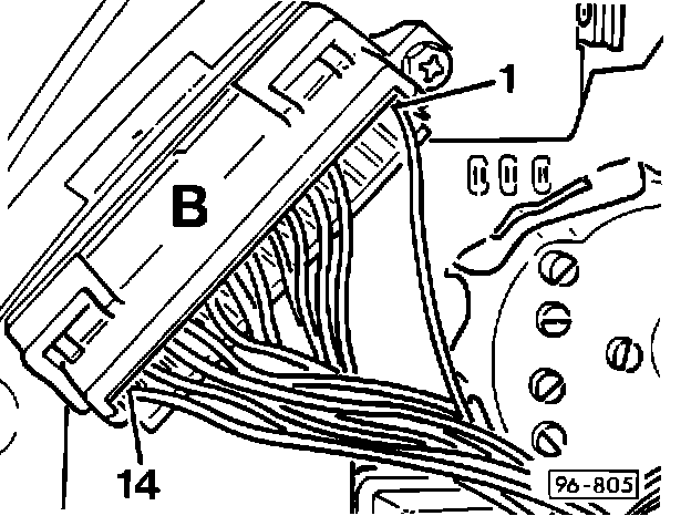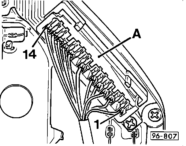 - connect voltmeter between contact 7 of connector A (yellow band) and contact 1 of connector B (white band) on instrument cluster