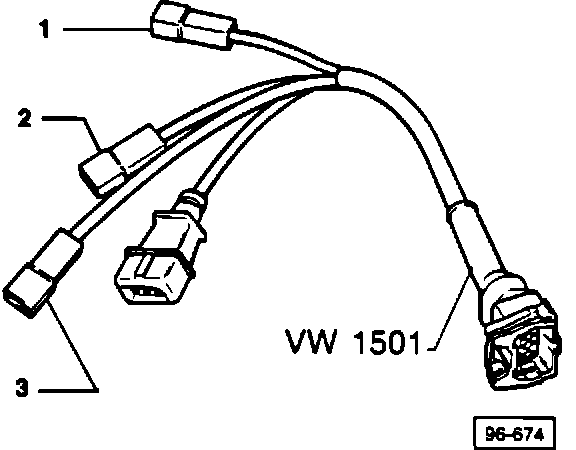 - connect voltmeter to VW 1501 - between connectors 2 and 3