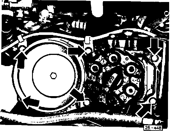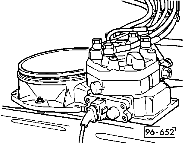 - detach complete mixture control unit from air cleaner housing (arrows) (fuel line on fuel distributor remain connected)