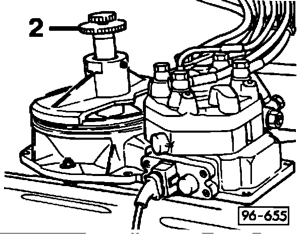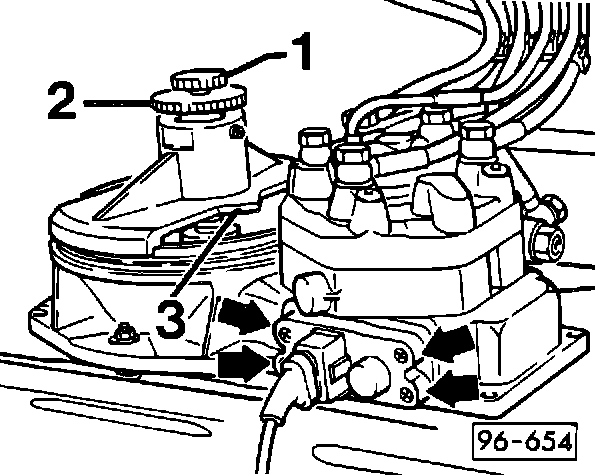 - disconnect plug from fuel consumption sender (air flow sensor potentiometer) (arrow 2)