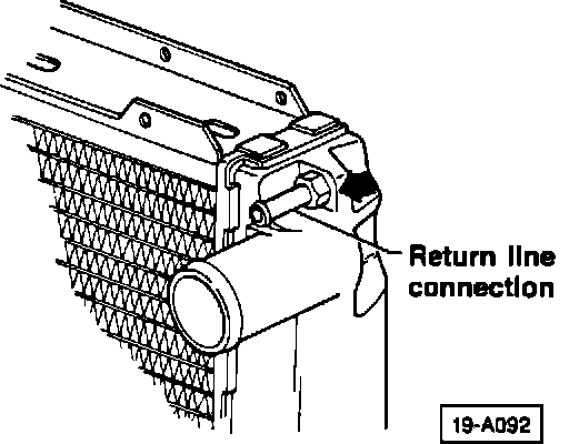 ^ drain radiator sufficiently to lower fluid level below broken return line connection
