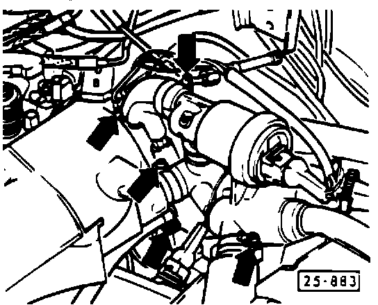 -- Disconnect terminal from cold start valve, remove cold start valve with fuel line attached.