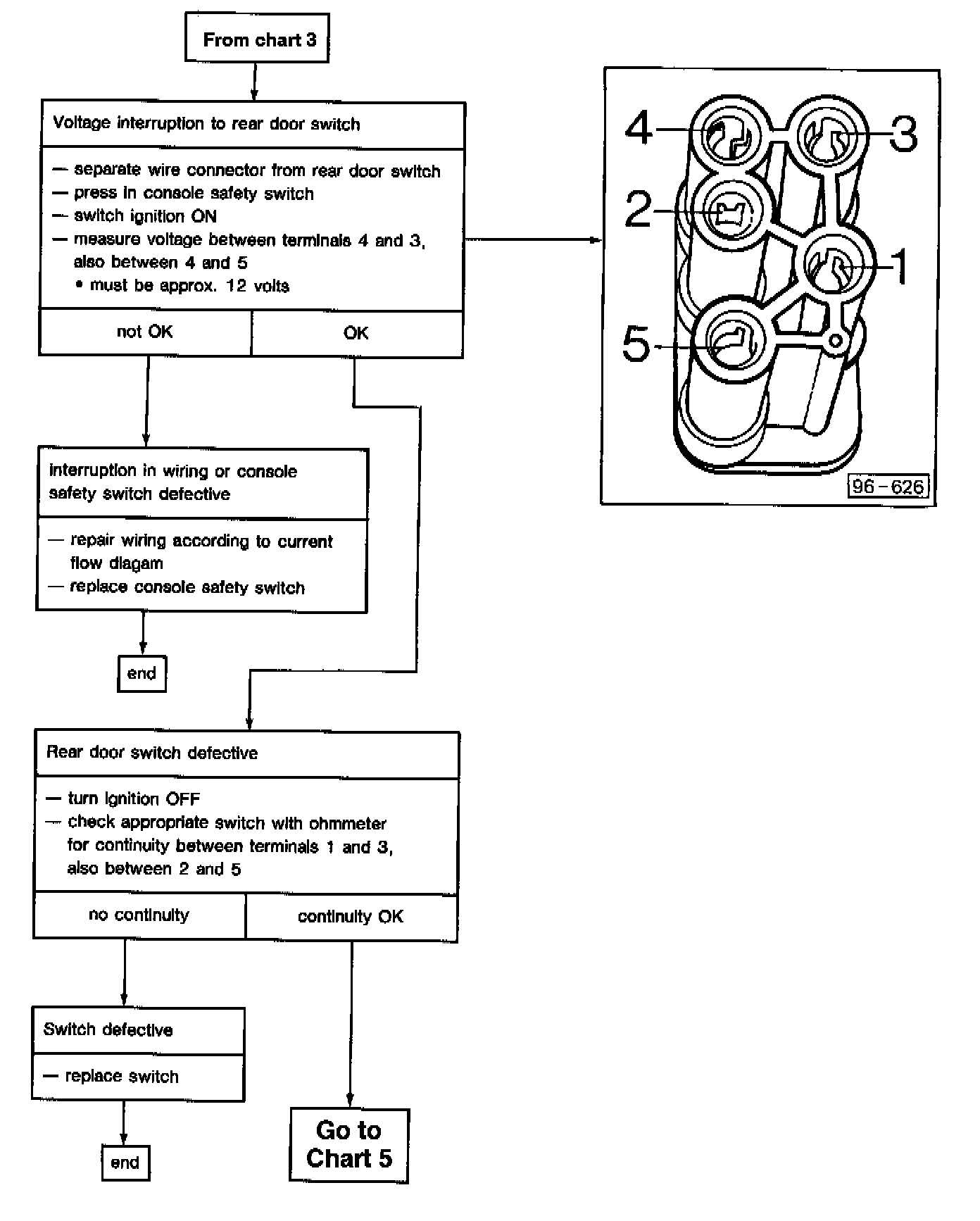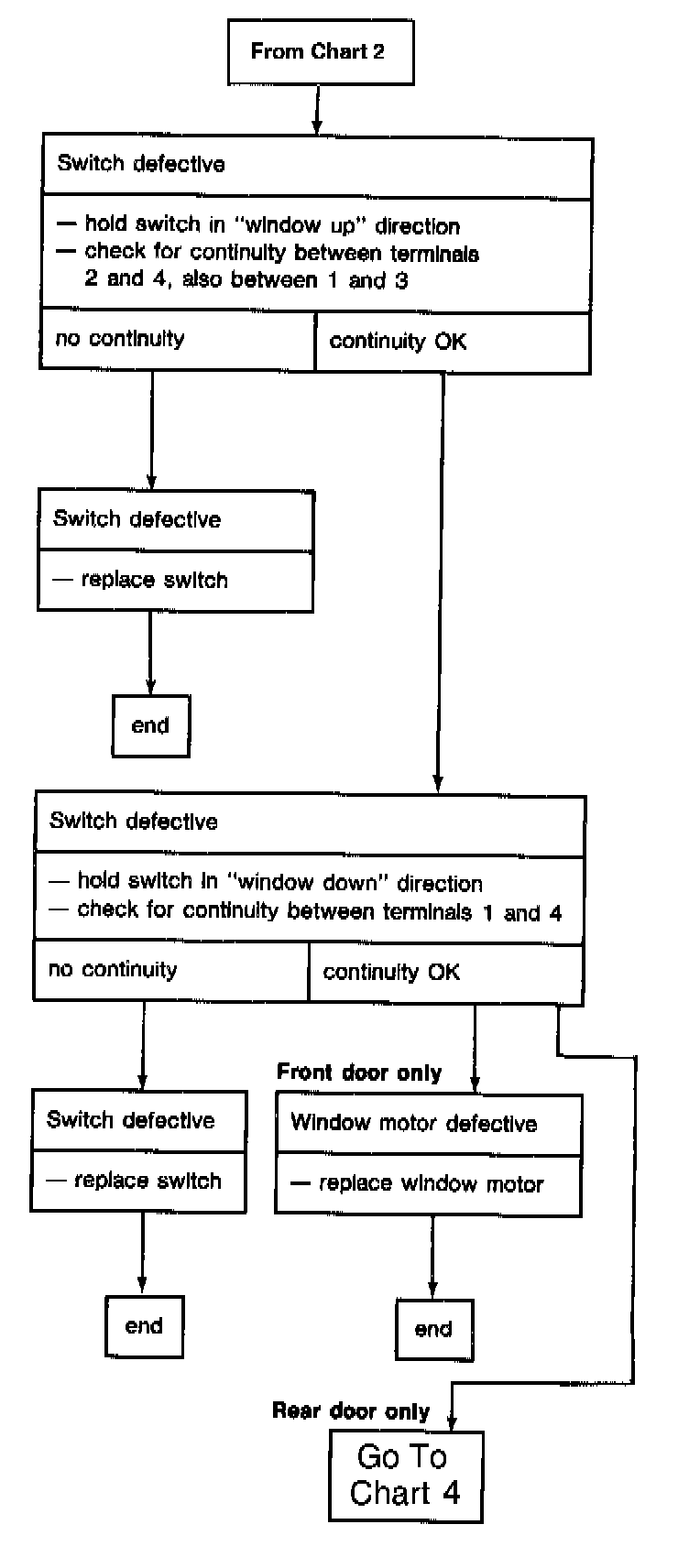 If defective parts need renewing check wiring according to current flow diagram leading to defective component.