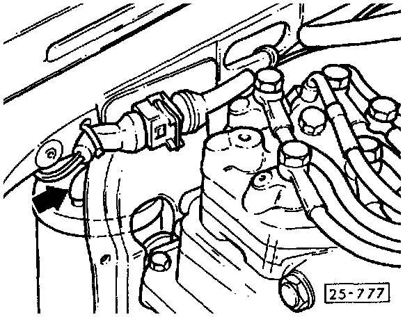 - Unplug electrical connector (arrow) from charcoal canister shut-off valve, located in right front wheel house