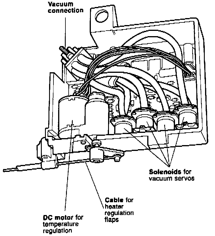 A small DC motor is used to control the position of the heater control flaps via a cable, thereby regulating interior temperature.