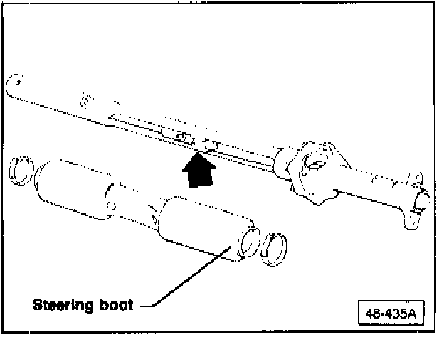 - lubricate steering rack bushing (arrow) with gear grease, Part No. AOF 063 000 04