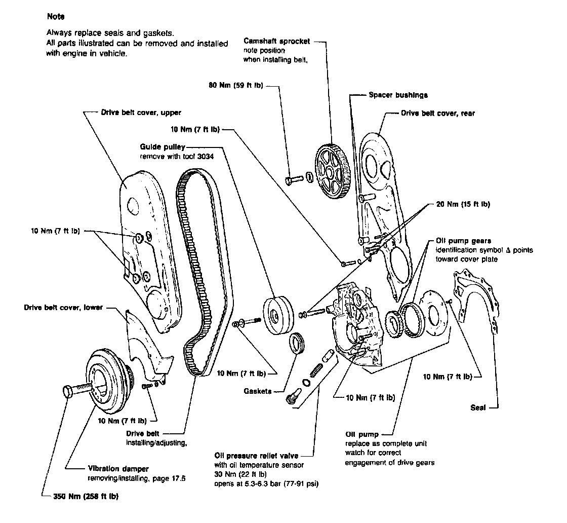 Oil pump, removingLoosen and remove belts for alternator, A/C compressor, central hydraulic pump