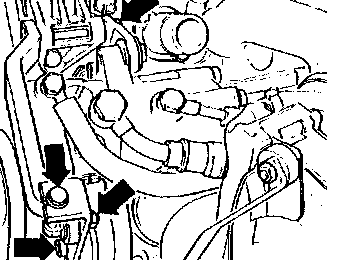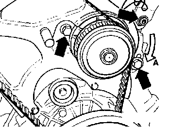 Loosen and remove drive belt by loosening coolant pump and turning to the right (white arrows)