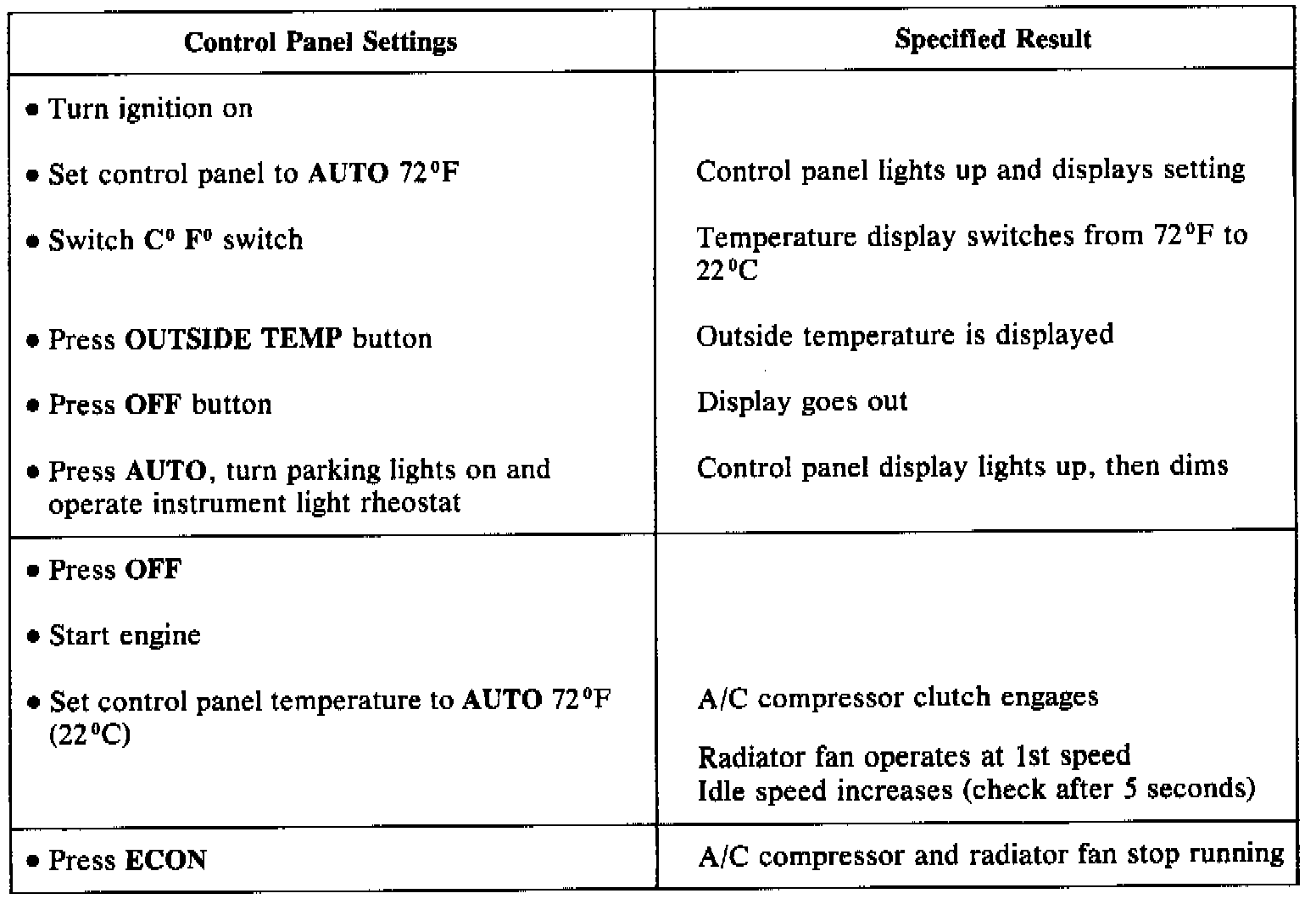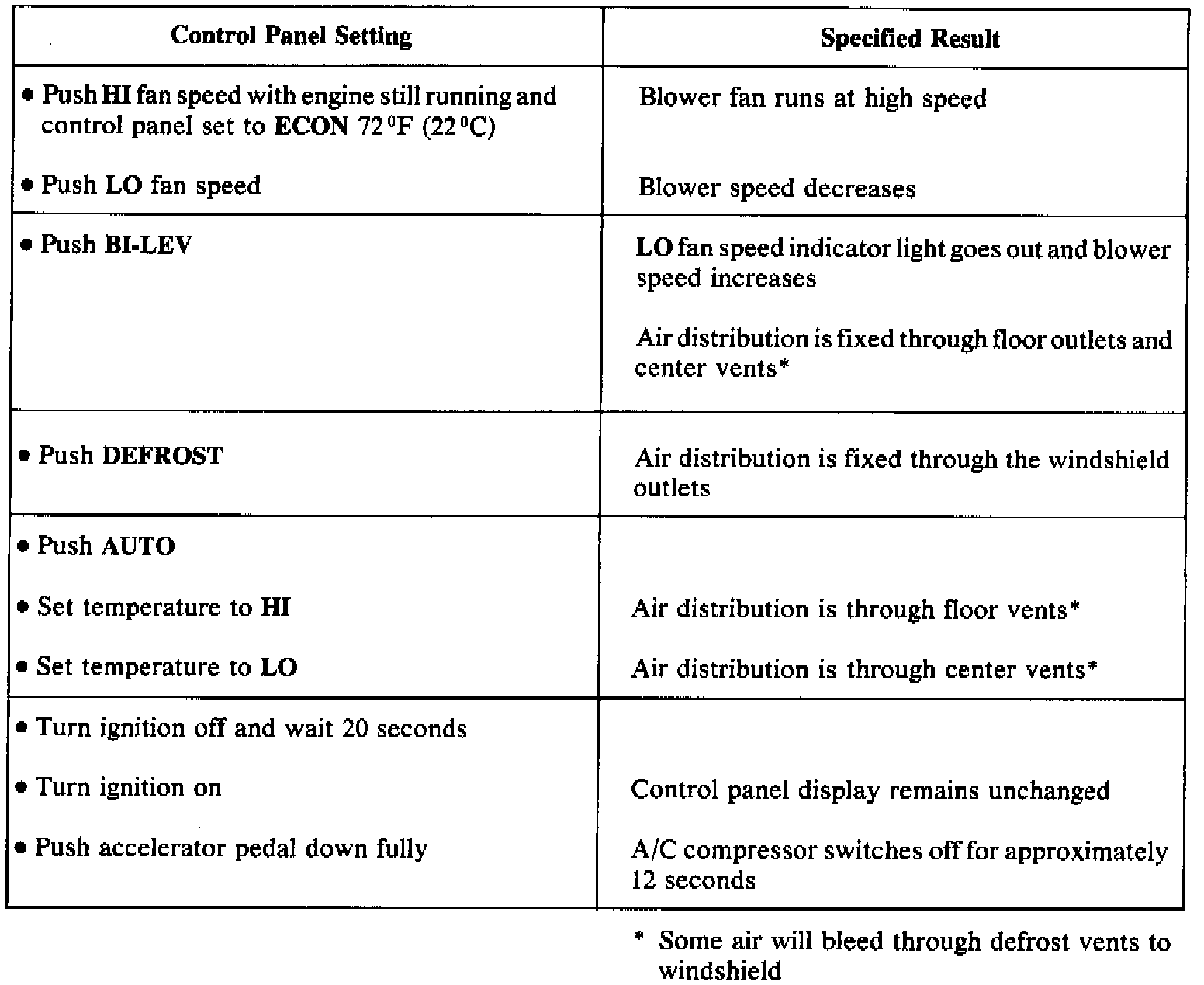 - Start engine and set control panel to AUTO and temperature to LO