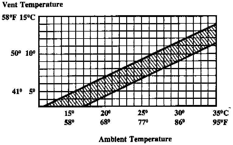 - After 5 minutes, vent temperature should coincide with graph.
