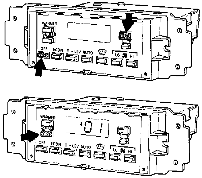 - Briefly press OFF button while holding outside temperature display button depressed.