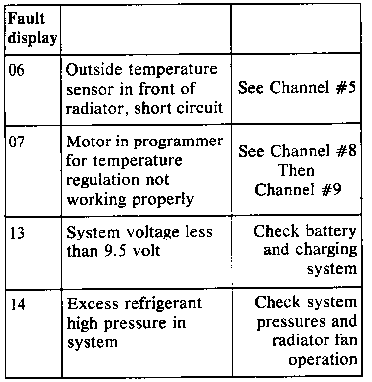 Channel 1 monitors the complete system for errors and will store any faults that occur for future display.To activate the display:
