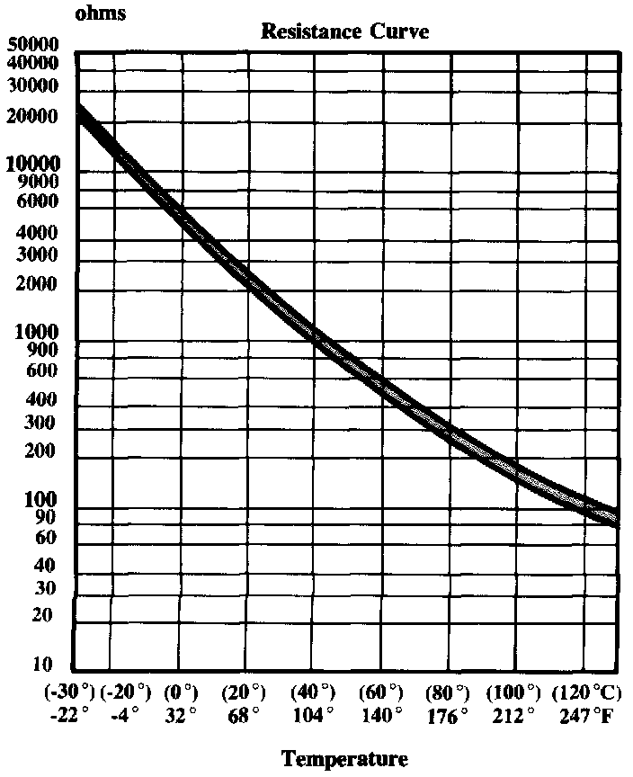 Both resistors in the temperature sensor have the same resistance values. The sensor is located in the cylinder head coolant outlet flange.
