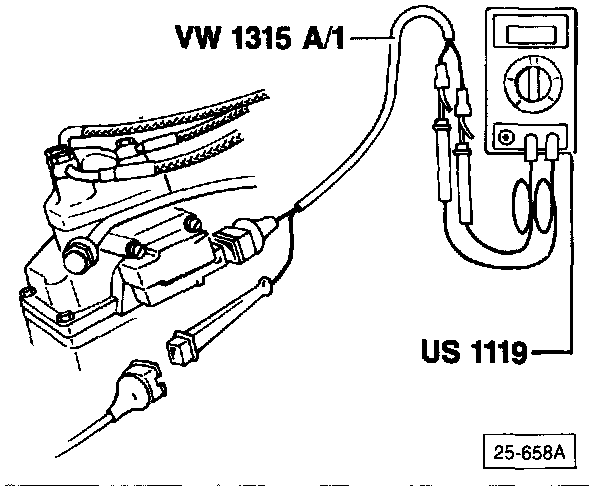- connect multimeter US 1119 to differential pressure regulator, using adaptor VW 1315 A/1