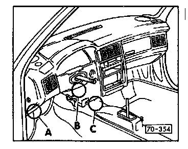 C - terminal connections from tunnel located here. Detach connection from welded stud on cross member