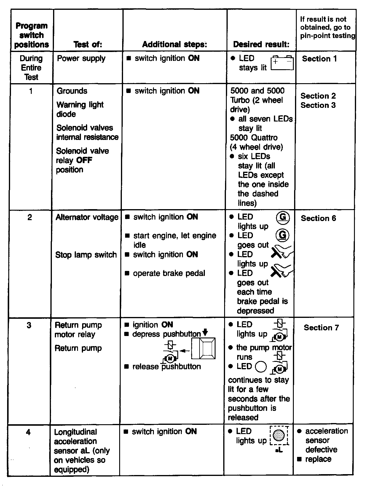 ^ if the center and/or rear differential lock is engaged, the ABS indicator light must come on (5000 Quattro only)