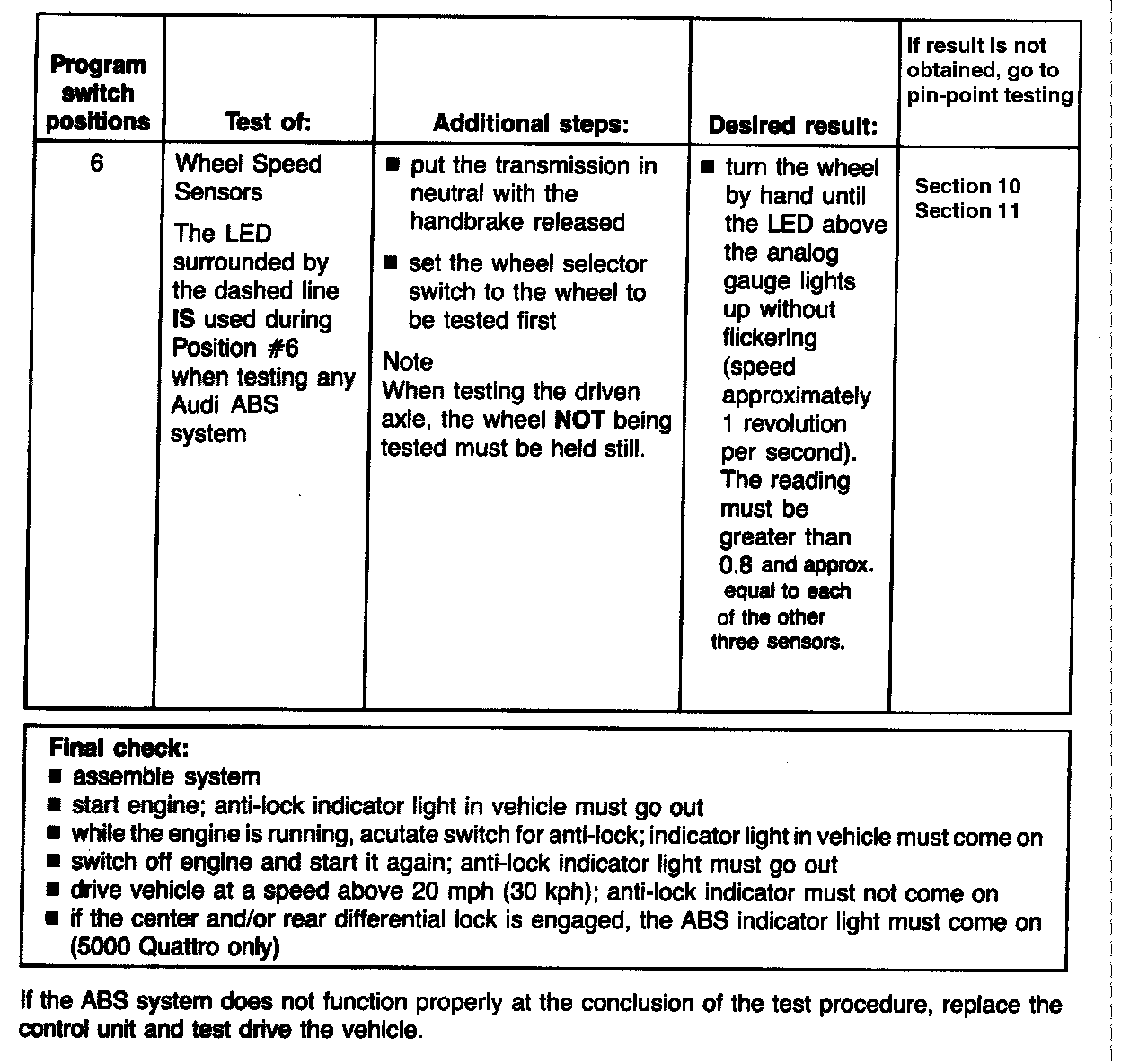 If the ABS system does not function properly at the conclusion of the test procedure, replace the control unit and test drive the vehicle.