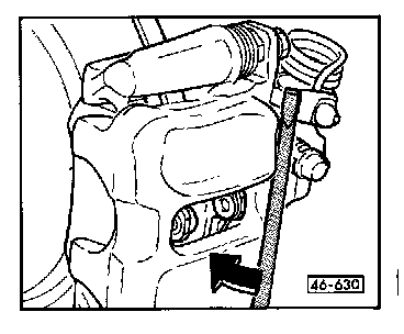 Parking brake cable is too tight if lever of opposite side caliper is pulled away from stop (arrow)