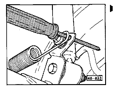 Push a screwdriver of at least 6mm dia. between rear hook of spring and roller