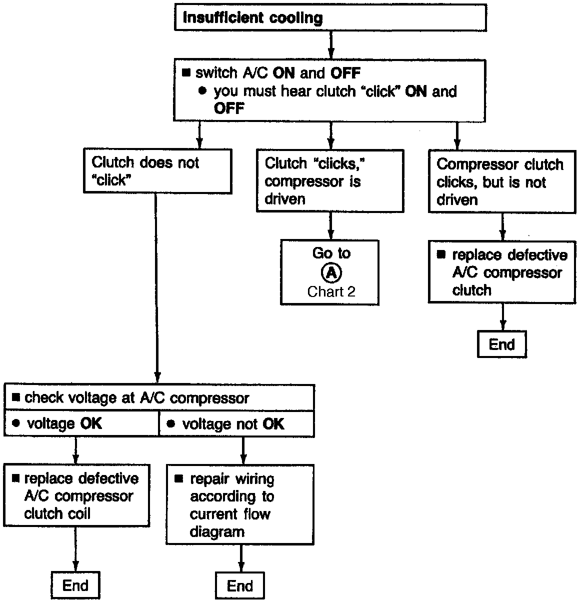 If noise comes from the compressor, check that compressor brackets are tight. If compressor makes knocking noise, especially during hard right turns, the refrigerant is probably over-filled.