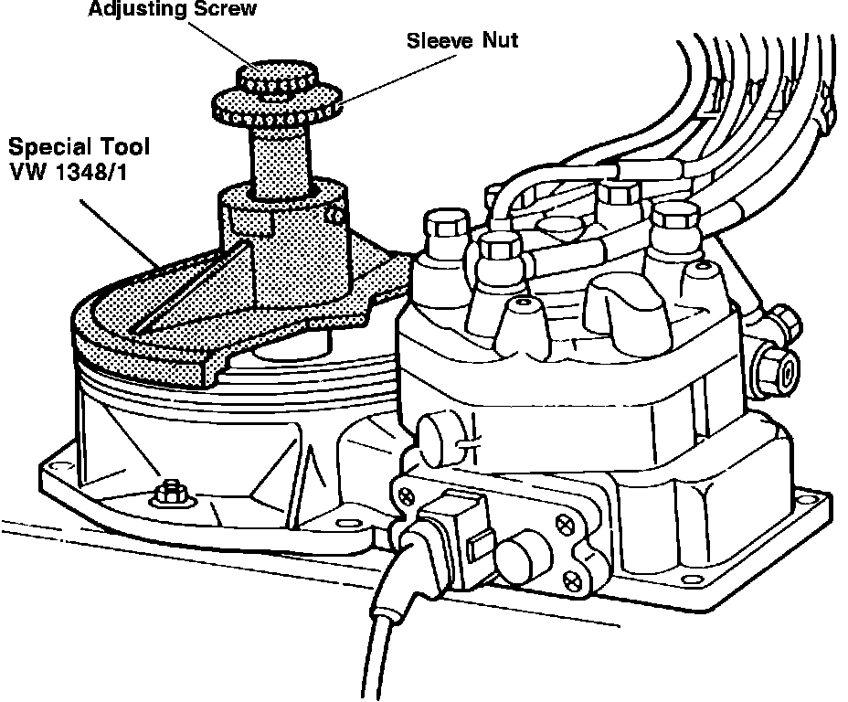 Note: As the potentiometer adjustment is very sensitive, a special tool is required to position the sensor plate accurately, and hold it steady. Using tool VW 1348/1, Fig. 10, is recommended. Do not attempt this adjustment without this tool or an equivalent.