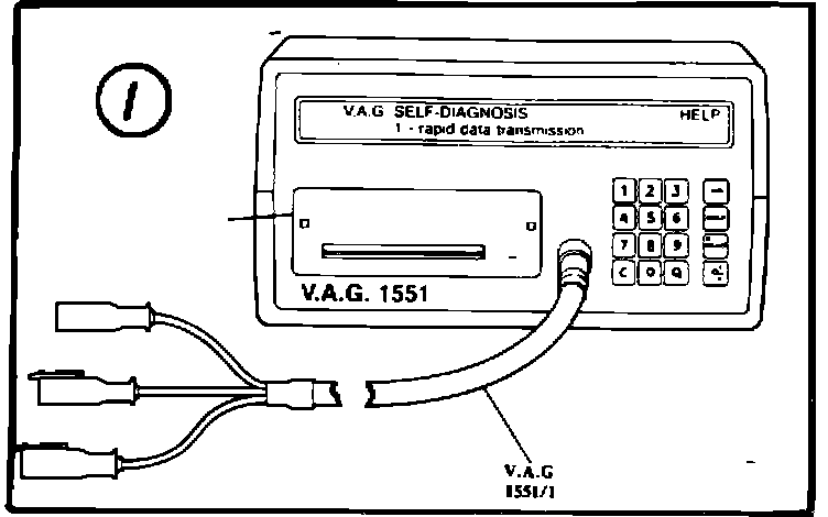 1. Connect the 1551 Scan Tool to the Data Link Connectors in the driver's side footwell. Press and hold the arrow button on the 1551 Scan Tool until the display "permanent ground exciter wire" appears.