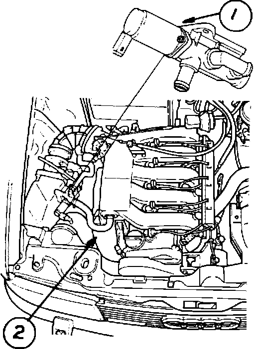 Up to 03/90 production, the MPI system can be identified by the Hitachi idle air control valve (#1) as well as a stainless steel exhaust manifold (#2).