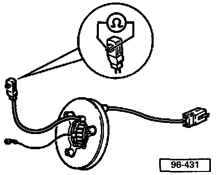 WARNING: Airbag spiral spring must only be tested when unclamped (on both sides) and removed- Connect multimeter to airbag unit connector.