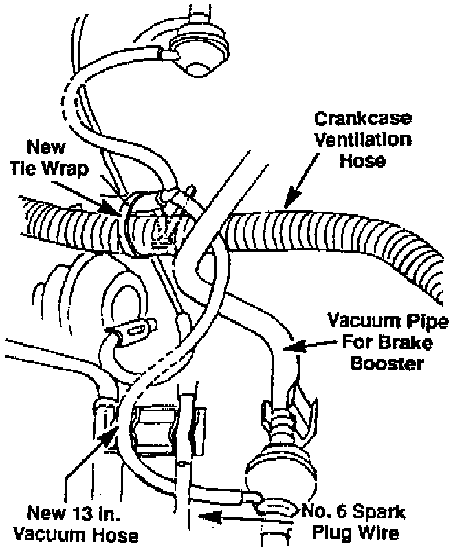 3. Route new hose away from EGR Valve and install tie-wrap at location marked (see illustration).