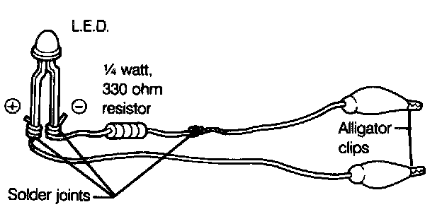 Do-it-yourself LED test light for safely testing sensitive solid-state circuits.