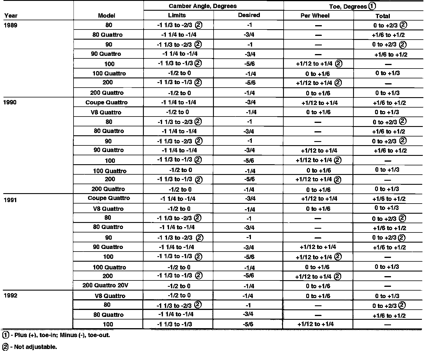 Rear Wheel Alignment Specifications: