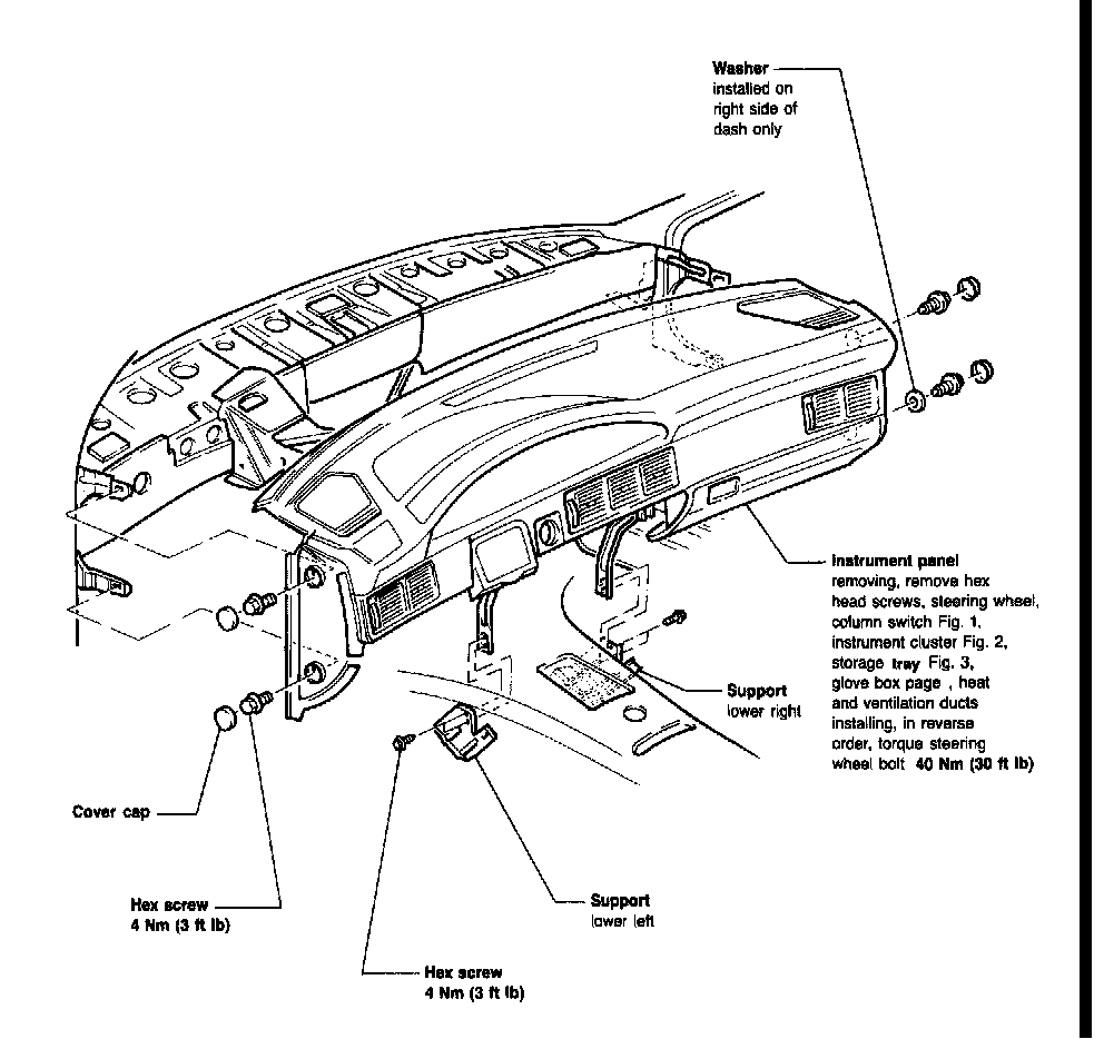 Instrument panel, removing/installingFig. 1 - Steering column switch