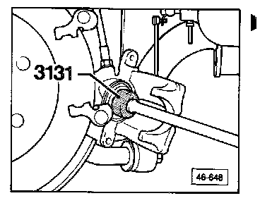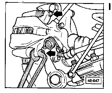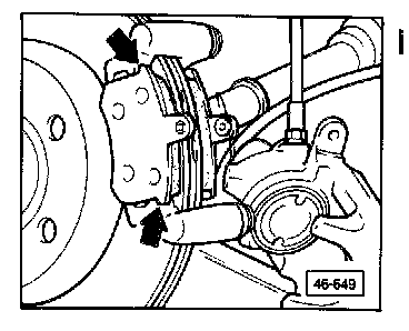 Remove bolts fastening brake caliper to carrier (arrows)