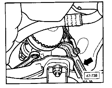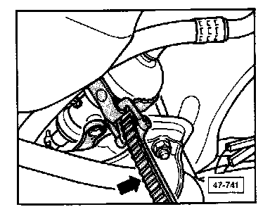 Hold pressure accumulator with an oil filter wrench (arrow) while removing banjo bolt from accumulator