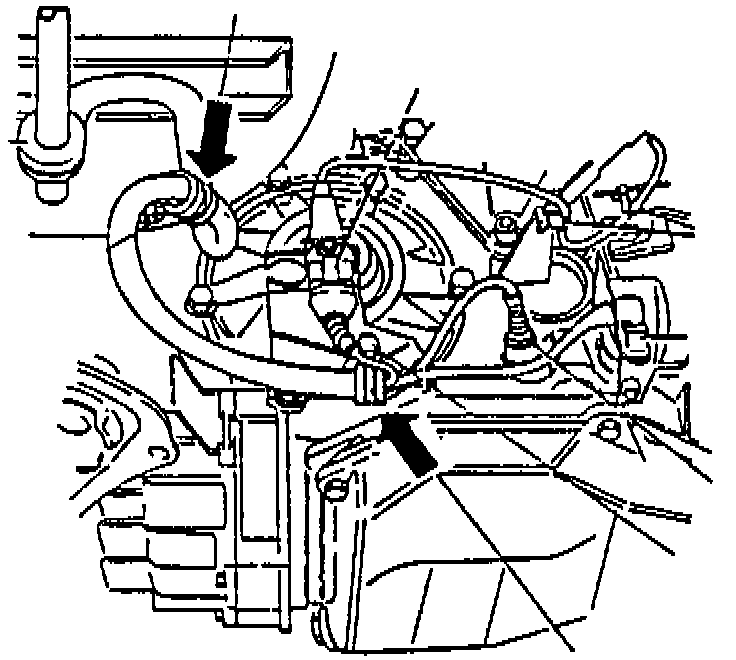 Breaks in the transmission wiring harness caused by too much tension in the wiring harness between the routing/retaining clamps (arrows).