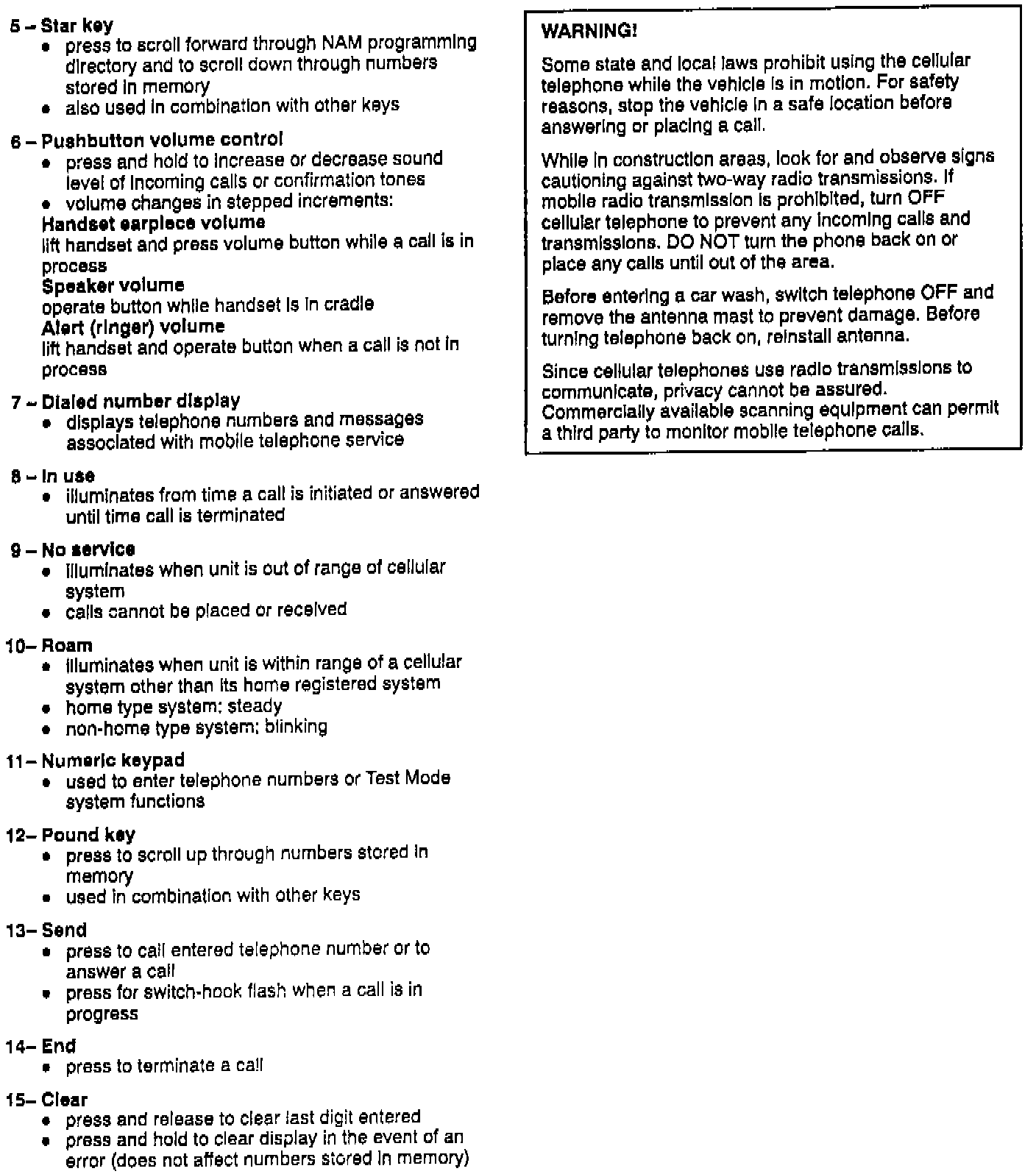 Telephone Functions and Descriptions