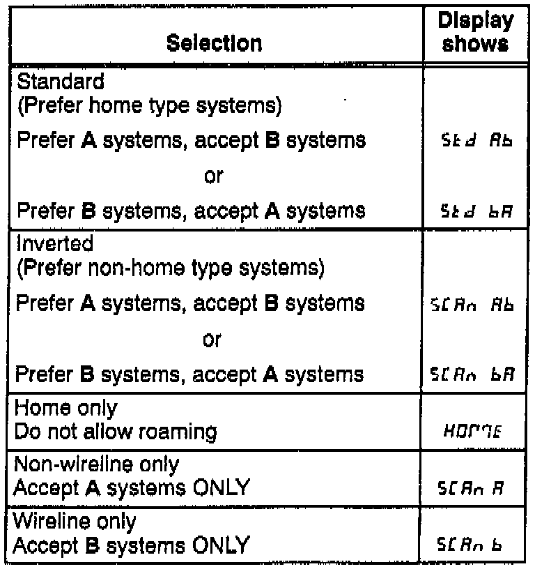 The roam characteristics of the phone can be changed to allow the type of service provided (non-wireline A1 or wireline b) to be programmed and in what preference.