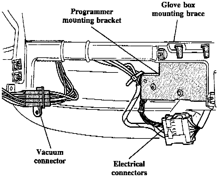 The Climate Control Programmer is located on a mounting bracket behind the glove compartment.